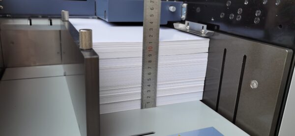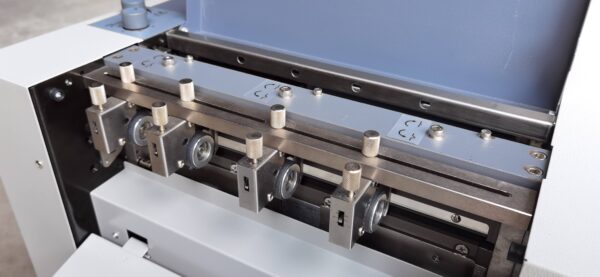 7 inch touch screen guarantee user with good working experiences with this machine. Whole set slide tool guarantee the accuracy and long time use. Also the SF-30A added the linear tool, so that customer can make cross line creasing or perforations in one pass. Paper length for 900mm feeding and collection is OK. Creasing speed been updated to 8200 pages per hour.