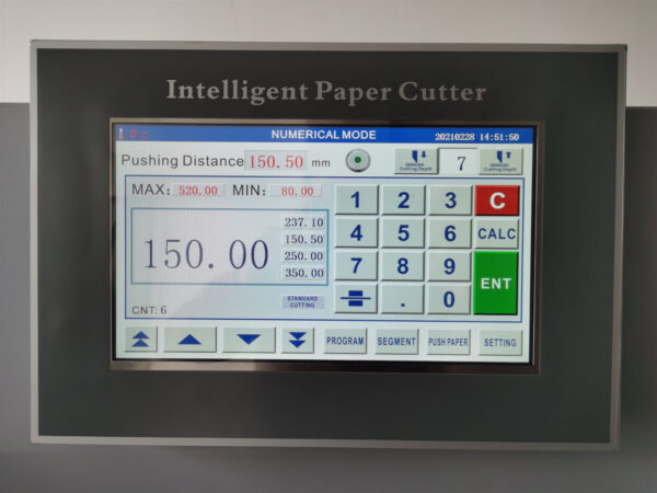 SF-HD heavy duty paper cutters, three models. 300gsm paper full load keep working 24 hours. They are the most powerful to precisely cut large stacks of paper stock. Our SF-HD series of hydraulic and programmable paper cutter is the perfect cutter for print finishing and on-demand use. SF-HD uses 380V three-phase electricity. SF-HD paper cutters are available in fully-automatic models. Cutting widths are available up to 800 mm. If you are looking for a high quality, reliable hydraulic and programmable paper cutter; you have come to the right place. Whether your market is quick-print, copy shop, in-plant, offset, or on-demand, we have the ideal cutter for your needs. We design the paper cutting machines so that they are user friendly and easy to operate, thanks to features such as LED display touchscreen with full status, and side buttons for easy two-handed operation. Equipped with state of the art security features including CE standard safety beam guards, our cutters are designed to be safe.